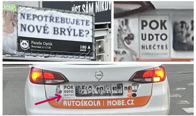 Nedávno jsem ve stejný den narazil v ulicích pražské Michle na dva perfektní příklady vtipné práce s rozmazaným, resp. zmenšujícím se textem v OOH.