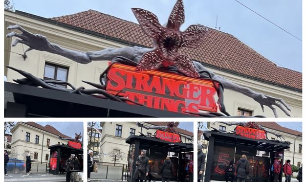 HOROROVÉ ZASTÁVKY MHD na Albertově a Chodově upozorňující na pátou řadu seriálu "Stranger Things" společnosti NETFLIX se jejich tvůrcům zkrátka povedly!