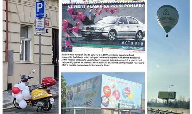 U kampaně na novou ŠKODU OCTAVIA jsme kdysi s kolegy umístili na billboard tehdy nedostatkové BALÓNKY ve tvaru srdce (viz foto, kde jsou v koláži i další zajímavé ukázky) a ty vzbudily takový zájem, že do hodiny skoro všechny zmizely. Moc nám to ale nevadilo, účel vyvolat rozruch byl splněn.